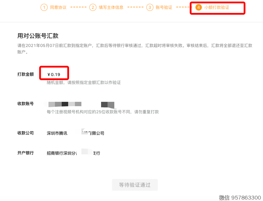 2)账号打款验证(去你的公账,让财务打款这个账号,按这个金额打款)