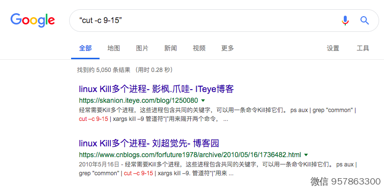 比如,要搜索 cut -c 9-15