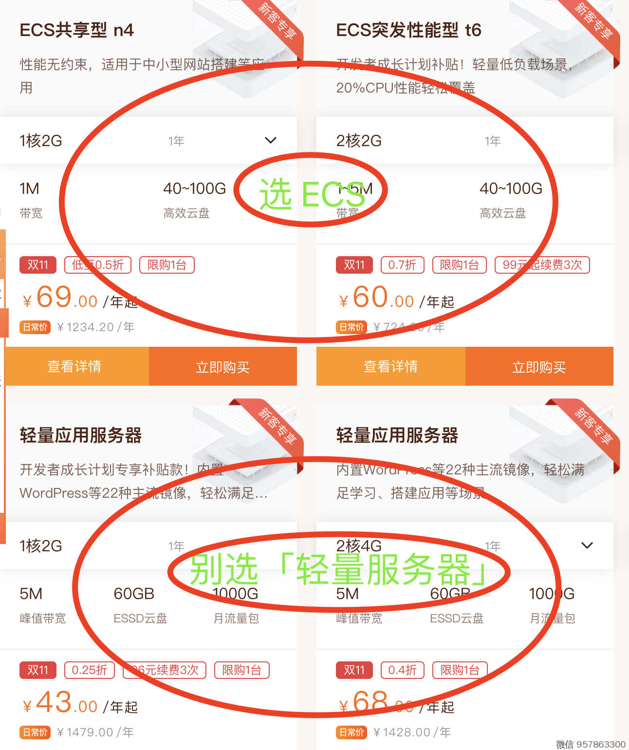 购买入口 -》 点这个选ECS服务器,60/年