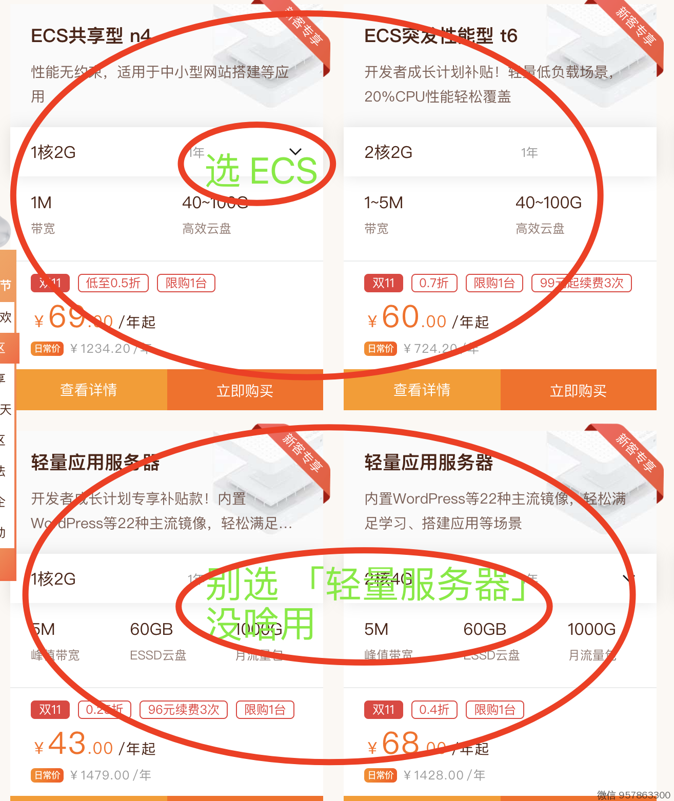 3、这次购买的入口(阿里云官网) -》 点这个选ECS服务器,60/年