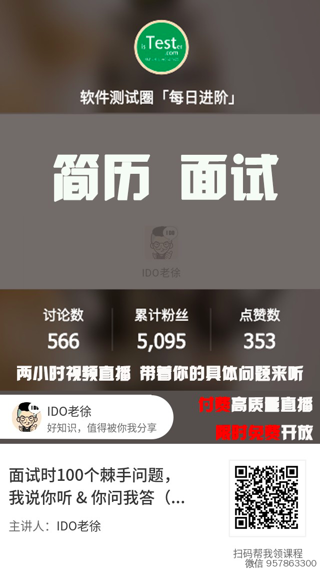 作者:IDO老徐,isTester,干了十几年测试,某公司质量部负责人,测试文章覆盖10W+测试从业者。坚持分享「原创职业观点、经验、答疑解惑」。希望通过自己的文字改变测试职业现状,让测试从业者整体水平提升一个Level 。