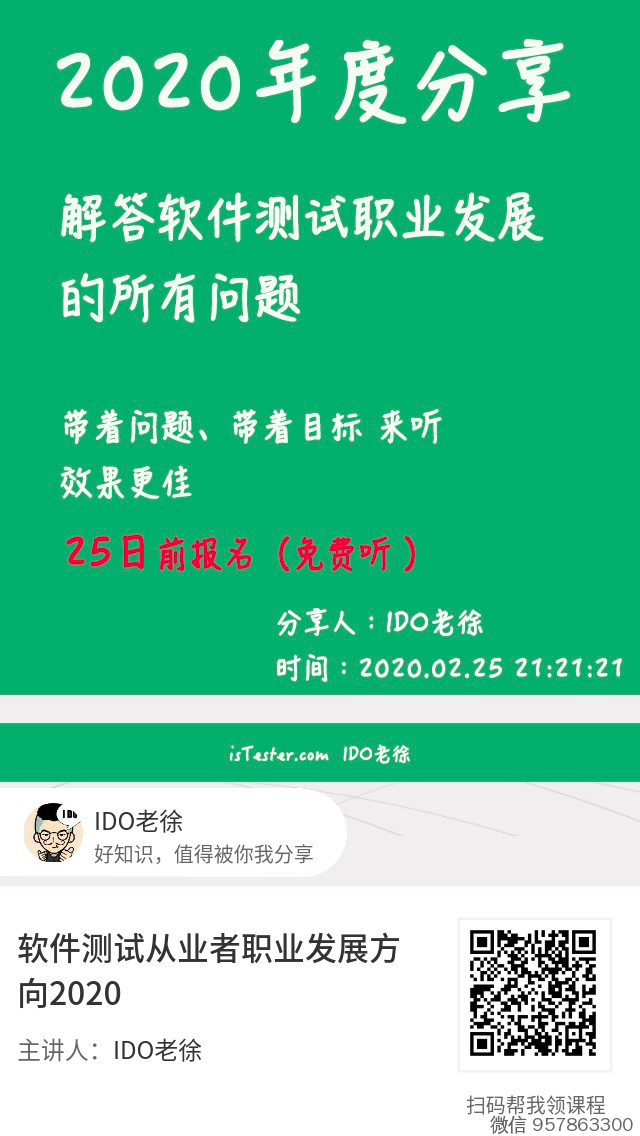 软件测试职业发展2020(直播、免费听)
